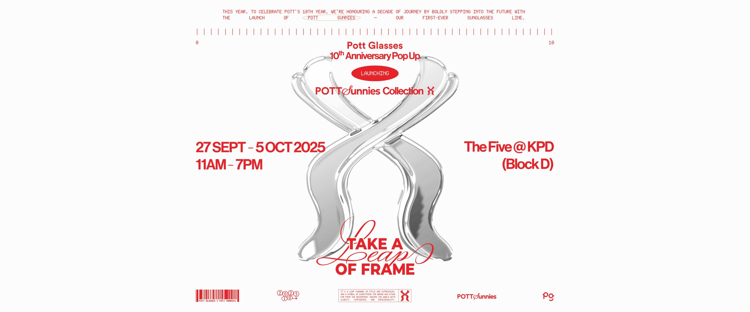 To celebrate a decade of bold visions and stylish frames, Pott Glasses is taking the leap with a 10-day anniversary pop-up and the grand debut of Pott Sunnies.